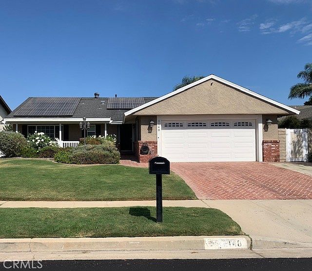 Turn Key Ranch Style Pool Home With A Paid Off Solar Panel System– This amazing home is nestled in a quiet neighborhood close to award winning schools with nearby shopping, home has been remodeled, features formal entry, open concept floor plan, beautiful stacked stone fireplace, large family room with exposed beams, hardwood flooring, high vaulted ceilings , chef’s kitchen features high end Viking Professional appliances - stove, microwave, and dishwasher, travertine floors, refinished cabinets, granite counters, formal dining room, three large bedrooms with crown molding and ceiling fans, master suite with luxurious master bath, new HVAC system, Tesla powerwall for backup energy, private backyard features a custom spa and pool, professional landscaping, no HOA, easy freeway access. Your dream home has arrived!