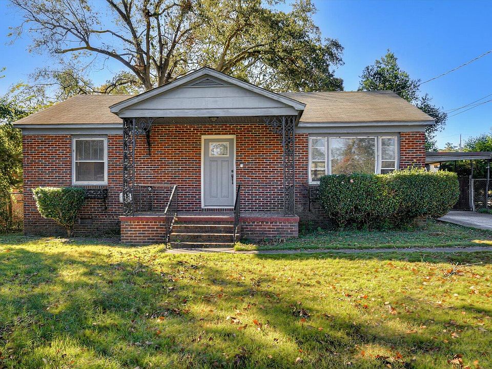 Welcome to this charming brick home, nestled on a quiet street with a lovely covered front porch. Inside, you'll find hardwood floors that flow throughout the front of the home, adding a touch of elegance to the cozy living spaces filled with natural light. The second living area in the back along with the fireplace are perfect for relaxation and gatherings. Step outside to discover a spacious fenced-in backyard, ideal for outdoor entertaining, gardening or storage. With ample space for children to play or pets to roam, this backyard is a great addition to the home.