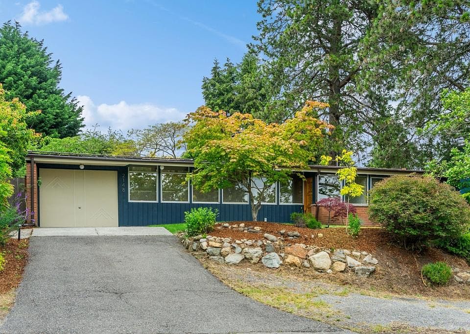 Meticulously cared for and tastefully updated 3 bed plus den and 2 bath home available now! Embracing classic mid-century style, the home boasts an open layout, vaulted beamed ceilings and wall to wall windows filling the space with natural light. The expansive living and dining area features a stunning view-thru fireplace and gleaming hardwood floors throughout adding warmth and elegance. The updated kitchen is complete with new appliances, a gas range, and room for a breakfast table. The primary bedroom offers an ensuite bath and a walk-in closet. Enjoy summer days in the idyllic multi-level backyard, which includes a unique greenhouse with water and electric connections. Minutes from Northgate Station and quick I-5 access simplifies commutes to UW, Northwest Hospital, and downtown Seattle.