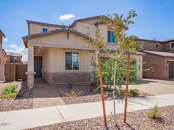 This stunning brand new home offers a spacious open floor plan with modern finishes, perfect for both family living and entertaining. The gourmet kitchen features quartz countertops, stainless steel appliances, a large island, and stylish cabinetry. The master suite serves as a serene retreat with a luxurious en-suite bathroom and walk-in closet. One bedroom along with full bath downstairs. Throughout the downstairs, enjoy the elegance of wood-look tile flooring, while the bedrooms are adorned with soft, plush carpeting. Conveniently located near Heritage Academy, Queen Creek High School, Costco, and Queen Creek Village shopping. This home offers easy access to AZ 24 and the 202 Loop. Major employment hubs in Phoenix, Chandler, Gilbert, and Tempe are just a short commute away. The communi amenities include a heated pool. Low-maintenance artificial turf and pavers backyard to be added soon. Don't miss out on this exceptional rental opportunity!