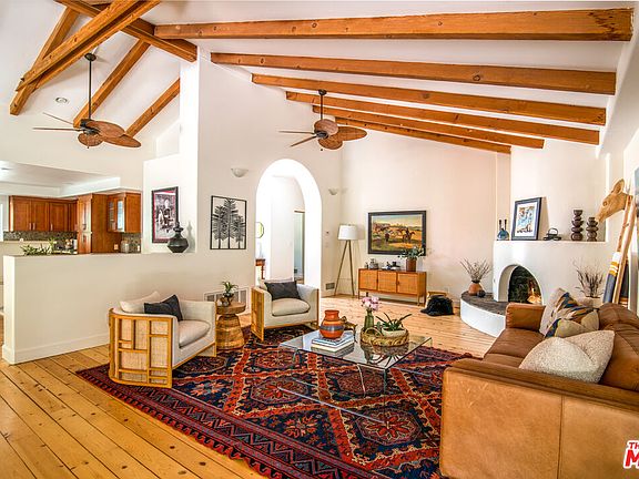Steeped in a serene provenance, on a sprawling lot dotted with trees, meandering stone paths & the backdrop of scenic canyon & mountain vistas, sits this rustic outpost with all the style, sophistication & privacy Topanga is known for. Replete w/several dwellings, the main home features open truss ceilings & natural wood floors dancing across an open plan designed to embrace nature. A blended dining & living room w/fireplace open seamlessly to a deck & expansive grounds beyond. A chefs kitchen has a built-in banquette, custom cabinets, stone counters & stainless-steel appliances. Four bedrooms + 4 baths, including a primary suite w/soaking tub & walk-in shower, were all designed to capture the epic beauty of the homes surroundings, whilst a custom-built 1bed/1bath ADU w/kitchen is perfect for extended family & guests. Endless entertaining options abound w/expansive lawns, sports court, swimming pool, spa & covered patio off the family/TV room and a green house to grow your all your fruits and vegetables! This an extraordinary offering w/easy access to The Valley, Westside & world-famous beaches.