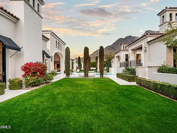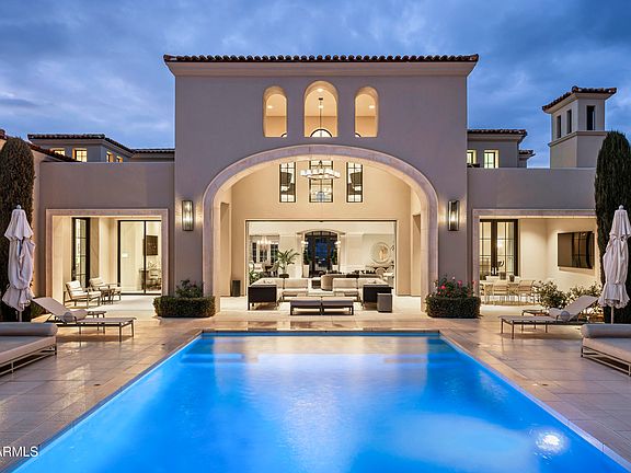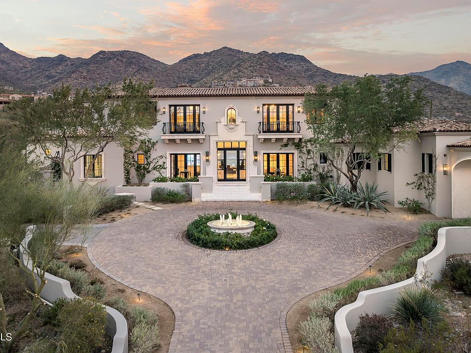 This timeless Modern Mediterranean estate is located on a quiet cul-de-sac in the heart of Silverleaf's prestigious Upper Canyon. HOME IS BEING OFFERED FULLY FURNISHED. Captivating views are found in every room, capitalizing on its 2250' elevation and unique mountain setting. This recently refreshed grand residence is the ideal size encompassing 8,889 square feet of indoor livable space in addition to sprawling outdoor living areas. The superb interior styling, orchestrated by Donna Vallone of Vallone Design, creates the perfect blend of casual luxury with a sophisticated modern edge. The house was designed by architect Luis Antonio Bonilla owner of the Antigua Home Designs. The main level living offers a large Primary retreat with spa-like bathroom, a private guest suite, luxurious office, spacious living room with bar area, grand soaring ceilings and pocket doors seamlessly blending the indoor and outdoor. The second-floor features two oversized guest suites. This estate home was built to the highest standard of quality and detail by Argue Custom Homes. Quality finishes throughout include the gourmet kitchen with Wolf/Subzero appliances, wide plank wood flooring, crown moldings and custom ceiling detail, extensive home automation system, back lit wine wall and private Office. Outdoor living spaces include a large covered rear patio in addition to two separate ramadas, a BBQ center, heated pool/spa and extensive turf. The immaculate and spacious 4 car garage including a custom show garage is yet another highlight. This home is a rare find in the neighborhood due to its combination of size, styling and views.