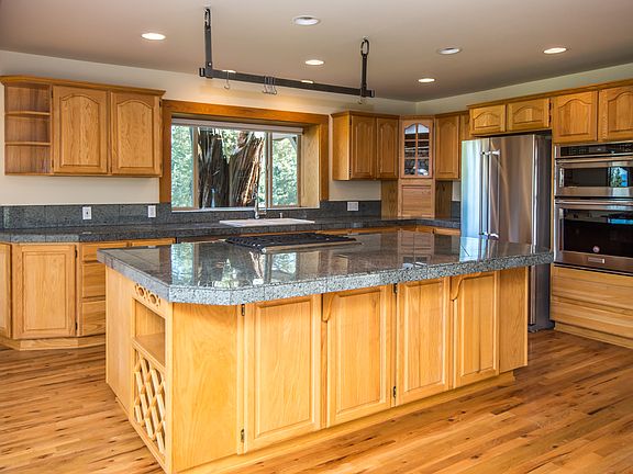 Country living, city close! Enjoy Cascade Mountain views from this 4,700 sf home with 5 bedrooms plus guest studio. Located on 19.05 acres with 9.5 acres of irrigation. High end features include new KitchenAid stainless steel appliances, granite counters, solid raised panel red oak cabinets and solid douglas fir interior doors. Amazing solarium designed by stonemason Wayne Cook. 2 car attached garage, large detached shop/garage plus 40 ft. x 60 ft. barn and 4 stalls. Just 10 minutes from Trader Joes. New composition roof in 2017. Dual pane Empire Pacific vinyl windows, fully trimmed windows with solid douglas fir. Hunter Douglas cellular blinds. Solarium with water feature and shower. Oversized 2 car garage and circular driveway. Detached 27 ft. x 29 ft. three bay finished and heated shop/garage. Large guest studio with full bath above shop/garage. Two lean-to sheds for horses or other livestock with (4) stalls. Walking trails with bench and viewpoints. Pine trees and rock formations. Riverfront feel with trails bordering the canal. (3) ponds with surrounding flowers. Waterfall (spillway) to large pond . Huge number of windows throughout home create a light and bright living environment. Total of (5) decks “for all seasons”. Very high construction standards used in home with unique quality materials used throughout. Detailed carvings on outside decks, stair railings and animal carvings on Juniper tree at the entrance. Recent improvements include: Heatilator EcoChoice wood stove, pellet stove, fencing in backyard/fencing for horses ($5,000), light fixture in dining room, added flood lights in back of the home, added lights to barn, added lean to stalls outside of barn and K-line irrigation in north pastures.