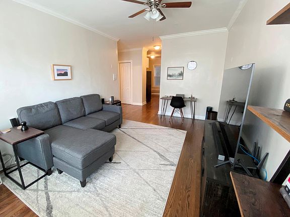 Lincoln Park is one of the best places to live in Chicago, and realtors recommend this lovely place for couples and solo renters. A one-bedroom, one-bath with hardwood floors, large windows covered with blinds, and high ceilings, this apartment is ideal. A spacious vintage kitchen charms with its ample cabinets and amenities like a washer/dryer combo, fridge, cooktop oven, and dishwasher. Pets are welcome, and the walk-in closets have plenty of room for storage. Shopping and parks are close by.