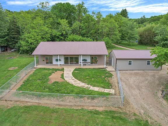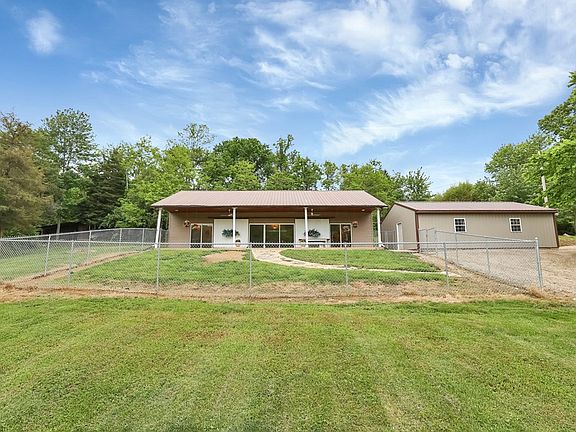Charming Ranch on 1.71 Acres with an Arizona- Vibe Set on a beautiful 1.71-acre lot in the countryside, this 3-bedroom, 2-bath ranch offers the perfect mix of space, comfort, and character. A spacious covered front porch welcomes you and sets the tone for the warm, inviting feel throughout. Inside, the open-concept layout is filled with natural light, connecting the living room and kitchen in a way that feels both airy and functional. The centerpiece is a massive butcher block island—great for cooking, serving, or casual seating. The primary suite features its own fireplace, private outdoor access, and a generously sized bathroom. Two additional bedrooms offer plenty of space for family, guests, or home office needs. Step outside to enjoy a partially fenced yard, perfect for pets or small animals, an oversized two-car garage, and a separate outbuilding for extra storage or workshop space. With its unique style, spacious layout, and country setting this house is just perfect