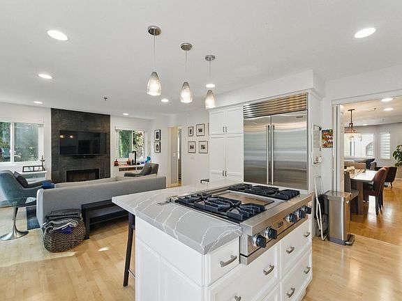 Welcome to this beautiful 4-bedroom, 3.5-bathroom townhome that offers the feel of a single-family home with 2,498 sq. ft. of thoughtfully designed living space. The recently upgraded kitchen features an island with a gas cooktop, 2-year-old Sub-Zero fridge, ample counter and cabinet space and built-in microwave & oven. The large backyard off the kitchen lives more like a single-family home yard with a very spacious 2-tiered deck as well as a large grass area below and on the side of the deck. The large trees surrounding the yard makes it very private and must be seen in person to appreciate. The main floor also has a living room, laundry area, formal dining room and family room, all with hardwood floors. Upstairs you will find the primary suite with an updated bathroom, 2 additional bedrooms and a second bathroom which was remodeled with permit in November 2024. A lower-level studio/ADU with a full bathroom and kitchenette provides versatile living options, whether for guests, a home office, or a private retreat. There is a large 2 car garage and new windows which were replaced recently. With easy access to grocery stores, retail shopping, and highway 101 the location is very convenient. Don't miss out on this must-see property that lives like a single-family home.