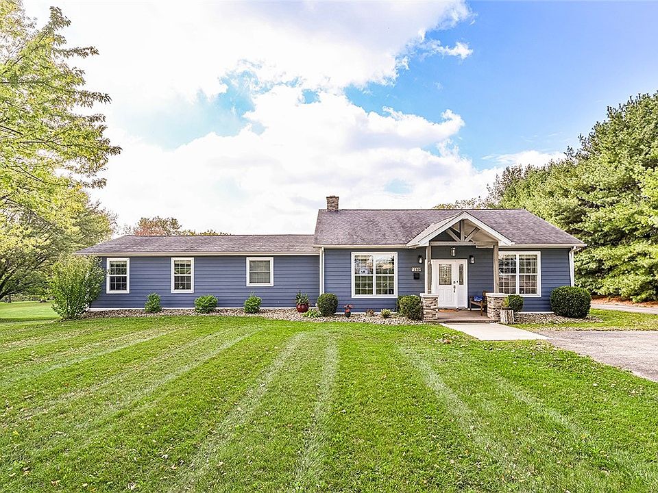 BEAUTIFUL MAINTENANCE FREE HARDIE BOARD 4 BEDROOM, 3.5 BATH, PRIVATE RETREAT RANCH ON 2.49 ACRES. BREATHTAKING MOUNTAIN VIEWS. MAIN LEVEL FEATURES GLEAMING BAMBOO FLOORING. OPEN CONCEPT GREAT ROOM: FAMILY ROOM; KITCHEN; DINING & OFFICE AREAS [COMBINED AREA 38X32]. KITCHEN W/GRANITE COUNTERTOPS STAINLESS APPLIANCES & CUSTOM BACKSPLASH. GAS FIREPLACE, SOARING 13’ CATHEDRAL CEILINGS W/ SKYLIGHTS. PRIMARY BEDROOM[18X13] W/ ENSUITE SPA-LIKE BATH: SOAKING TUB; SHOWER & WALK-IN CLOSET. BEDROOMS #2 [12X12] & #3 [12X10]. FULL BATH. ELEVATED DECK [54X15] ACCESSIBLE FROM GREAT ROOM. LOWER LEVEL-SEPARATE SUITE [24X19] W/ BEDROOM; SITTING OR DINING AREA; FULL BATH. PRIVATE LEVEL ENTRANCE. IDEAL FOR AIRBNB OR VRBO. OVERSIZED 2 CAR GARAGE W/ PAVED PARKING FOR 8+ VEHICLES. BONUS BAY W/ SINGLE GARAGE DOOR FOR STORAGE & "TOYS." 18X32 POOL W/ SURROUNDING DECK. GREENHOUSE W/ ELECTRIC/WATER, ALSO INCLUDED: AN INVISIBLE FENCE, 200 AMP ELEC, SHED AND SWING SET.