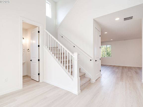 The Coronado floorplan is a favorite. As you step inside, high ceilings and a second-floor balcony create a dramatic entry on the main level, which also features a study and powder bath, offering versatility for guests, work, or play. The great room flows seamlessly into the spacious kitchen. Boasting quartz countertops, built-in stainless steel appliances, and plenty of storage space, the kitchen won't disappoint. Adjacent to the kitchen, a private covered deck overlooks Currin Creek, providing a serene backdrop and a great opportunity for incredible sunset views. A huge walk-in pantry with built-in shelving right off the garage make grocery runs a breeze. Upstairs, you'll find three secondary bedrooms, each with its own walk-in closet. The spacious primary suite offers sunset views. The attached primary bathroom features an oversized walk-in shower with floor-to-ceiling tilework. A large laundry room provides ample storage. Experience luxury living at its finest in this exquisite home. Schedule a tour today and discover the perfect blend of comfort and natural beauty that awaits you in Cascadia Ridge.