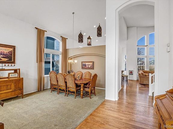 Welcome Home! This beautiful two-story stucco home, nestled in a prime location in Vista Ridge backing to the Colorado National Golf Course's 15th hole, offers a blend of warmth, comfort, and breathtaking views. This home is a true gem just 20 minutes north of Denver. Upon entering you are greeted with vaulted ceilings and beautiful hardwood floors that guide you throughout the main level. The formal living and dining area then leads into a spacious kitchen area that features granite countertops, a desk, a pantry, and an island with seating and a generous dining area. This area seamlessly opens to the family room, complete with floor to ceiling windows, beautiful built-in shelving and a gas fireplace. The open and inviting floor plan connects the spacious living areas, creating an ideal setting for both everyday living and entertaining. The home offers a total of 6 bedrooms, 5 baths, and a loft with a highly desirable main floor primary bedroom. The professionally finished basement, completed in 2018 is an incredible place for entertaining with a very appealing layout with ample natural light, a large multi-recreational room featuring a stunning wet bar with really nice, thick stone finishes, surround sound, with an adjacent 3/4 bath, two sizable storage spaces and 2 bedrooms that share a Jack and Jill bathroom. (furnace & A/C 2017) The newly painted exterior (2021) complements the beautifully landscaped yard where you'll have a spacious update deck, and a lower stone patio for all the family BBQ's or just enjoy the beautiful scenery. Explore the neighborhood's abundant amenities, including Pickleball, swimming, tennis, volleyball, hot tub, workout/ fitness, playground, community center and more. Golfing available (for additional fees). Buyer and buyer's agents to verify all information, including square footage, HOA fees, amenities, and taxes. Don't miss your chance to own this exceptional property. Schedule a showing today.