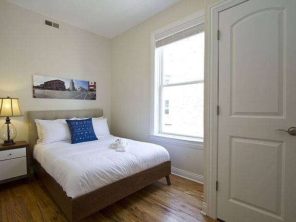 Available April 1. Fully-rehabbed two-bedroom apartment plus dining area (or office) and walk in closet. The unit is flooded with light from its large windows and high ceilings. It features newer kitchen cabinets (42" with crown molding), granite countertops, extra deep double-bowl sink with disposal and upgraded stainless steel appliances (GE & Bosch). The bathroom has newer fixtures and finishes featuring glass tile accents, picture-framed built-in medicine cabinet, large shower head and a quartz top vanity. Great location! Close to the action on Division Street but away from the late-night negatives. Just 5 blocks to Six Corners (North/Damen/Milwaukee) and take the Blue Line L. Also, just 5 blocks from the Division/Ashland Blue Line station. Division Street is Wicker Park's entertainment mecca. Its extra wide sidewalks are ideal for al fresco dining, drinks and hanging out with friends. Other Features: - Eat-in kitchen with peninsula/island bar seating - GE french-door refrigerator