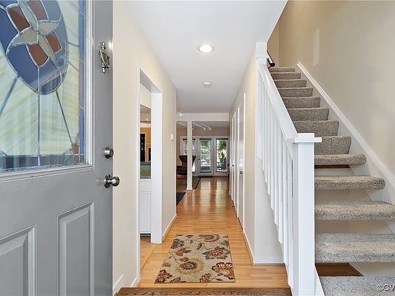 Upstairs you will find a rare offering in the large owner’s suite. The primary suite boasts vaulted ceilings, skylights, attached private bath with tile floors, and a loft area perfect for working from home! There are two additional bedrooms both with vaulted ceilings and skylights and a hall bath with tile floors. This home has been wonderfully maintained including newer paint, brand new dishwasher (2024), stainless steel appliances, new water heater (2024), and newly stained front porch and back deck. Enjoy the 1.5 acres of common areas that this wonderful community has to offer. This home is ideally located minutes from Powhite Parkway, Chippenham Parkway, Downtown Expressway and the heart of Bon Air!