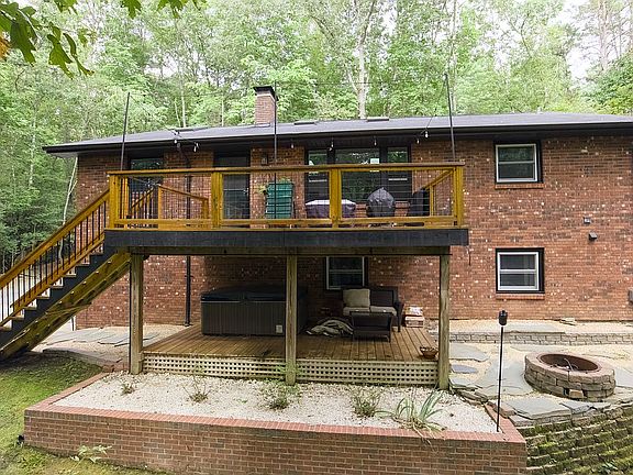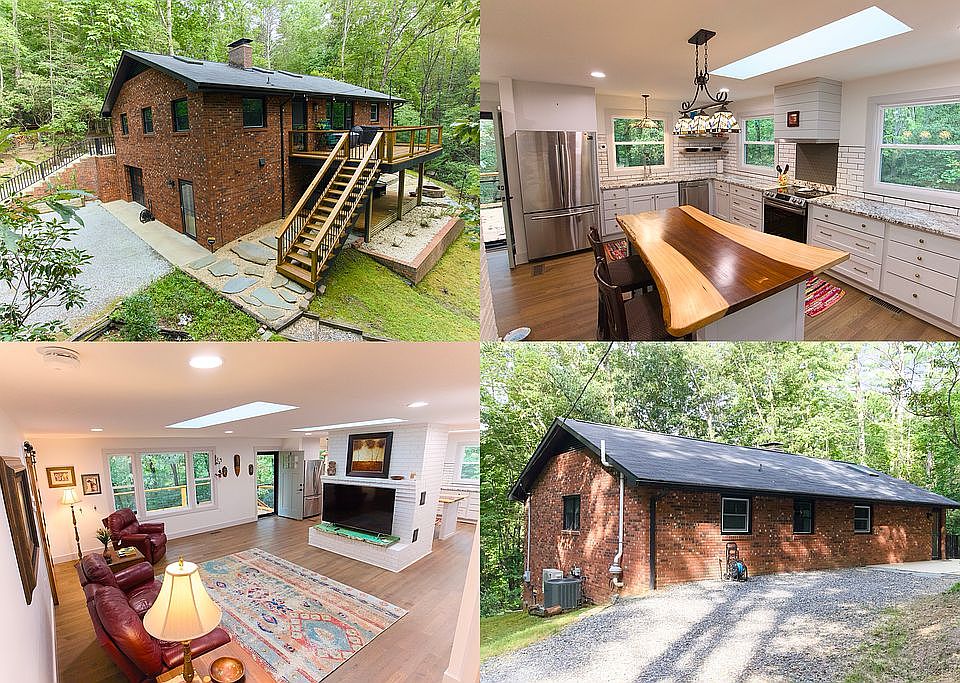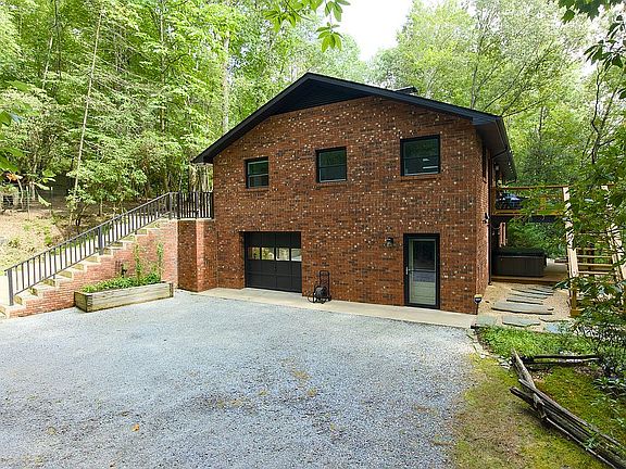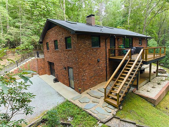 Windows galore, Spacious granite counter tops, apt to rent or optional family recreational space, hot tub for relaxing and recuperating, forested walking trails, privacy while living in the NC mountains, close to amazing restaurants, powered parking for RV, brick exterior, no step entry both upper and lower levels, private parking for each level, skylights that offer abundant natural light, Turn key home partially furnished! Move in ready! Open concept floor plan.