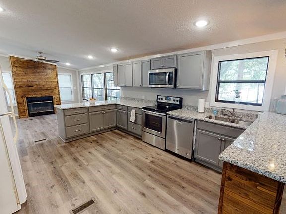 Relax on the patio or deck and watch the sun go down on the water in this quite cove on Lake Palestine. Newly remodeled and completely updated inside! This home has 3bd/2ba, walk-in closets in all rooms and large laundry room. Great kitchen with all new appliances and plenty of storage. Laminate wood floors; open concept with lots of windows overlooking the water. Home sits on 3 lots and one additional lot across the street for extra parking if needed. Greenhouse and storage bldg as well. Pier is in need of some work. Seller wiling to negotiate sale with all furnishings currently inside home.