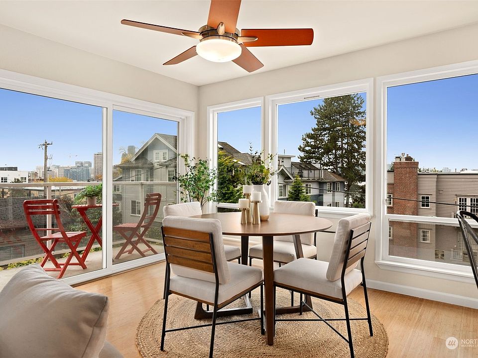 OFFER REVIEW DATE ADDED. Seller to look at offers at 1pm Thursday, Oct 17th. Experience the ultimate urban lifestyle with this beautifully remodeled 2-bedroom, 2-bath condo. Nestled in the heart of the city, you can park your car and complete all your errands on foot. Enjoy the vibrant hustle and bustle of city life, then retreat to your sanctuary with newly refreshed interiors: brand-new bathrooms, lighting, fixtures, carpet, and kitchen countertops and sink. Relax as you watch stunning sunsets behind the Space Needle and Cascade Mountains. Plus, you get the convenience of TWO DEEDED parking spots. Live the city life you’ve always dreamed of.