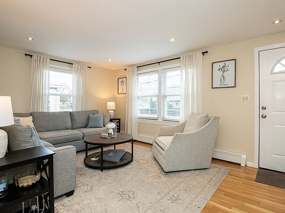 Move right in to this adorable and inviting 2 bedroom ranch/cape home. Featuring gleaming hardwood floors throughout and a spacious living room that flows seamlessly into an eat-in kitchen; perfect for everyday living or entertaining. Downstairs you'll find a semi-finished basement offering a flexible bonus space; ideal for a family room, third bedroom, or office, along with an additional unfinished area with laundry and ample storage space. Step out sliding doors onto a large deck overlooking the partially fenced in backyard and driveway large enough for 3 cars. Other updates include a newer heating & hot water system (2023) as well as new stainless-steel stove and refrigerator. Just a short walk to beautiful Brown’s Pond and conveniently located near parks, shopping & access to major highways. Whether you're a first-time buyer or looking to downsize, this home is a wonderful opportunity!