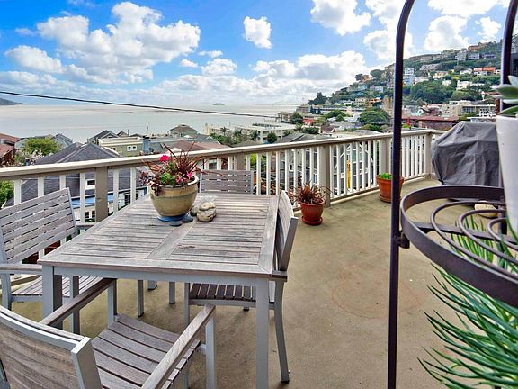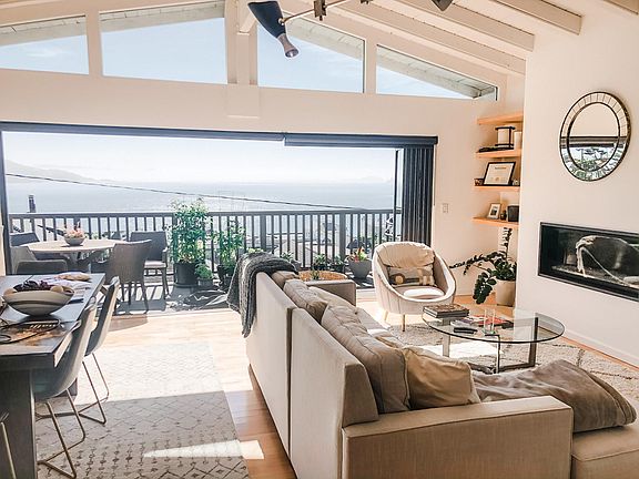 Newly renovated bright and sunny top floor unit with 2 bedrooms, 1 bathroom, open floor plan, high vaulted ceiling, floor to ceiling folding glass doors that open to a deck with spectacular Bay and San Francisco views. The bedroom also opens to a deck in the back with beautiful mountain views and overlooking a shared garden. This unit is rented with another unit situated at the basement which also has one bedroom, one full bath, small living room with a kitchenette, washer, dryer and large storage area. The basement unit is perfect for a home office, visitors or Au Pair. There is a shared garden with the middle tenants, one carport and plenty street parking. Situated at the southern tip of Sausalito, 5 minutes from Golden Get Bridge and a short drive to the city. This is in a very private 2 unit building. Owner pays for Trash and maintains the yard.