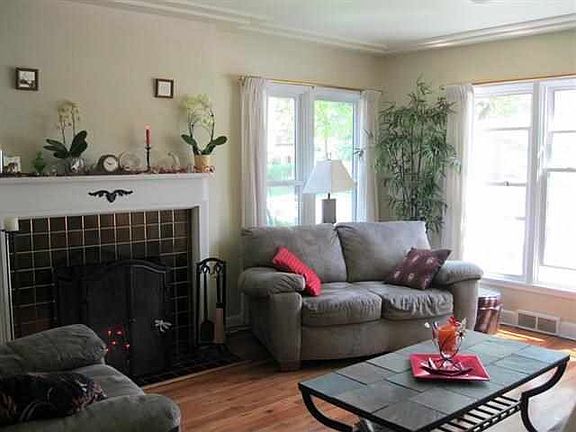You'll absolutely adore this stunning 1939 Tudor Revival with its mellowed brick exterior and charming sloped roof. Filled with nooks and crannies, arched doorways, beautiful hardwood floors and semi-open staircase and a wood burning fireplace. Walls and ceilings feature a pillow top plaster treatment. Master bedroom features an alcove sitting area. The many improvements include new windows, soffit/facia, gutters, light fixtures, vanities, kitchen floor, counter and backsplash, chimney cap, paint and much more. Unique above-garage balcony overlooks a delightfully landscaped yard with blooming perennials, mature trees and cobblestone walkways.