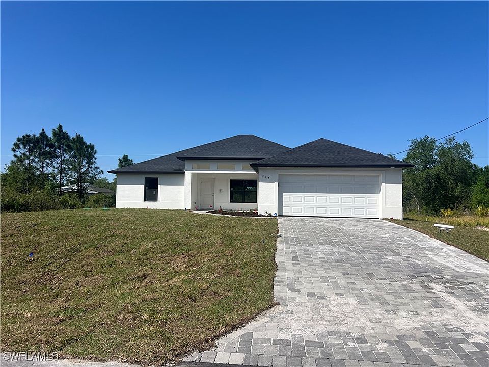 A beautiful new construction home in Southwest Florida .50 acres. The Marlin model features 4 bedrooms, 2 baths, 2 car garage, over 2000 square feet of living, stainless steel kitchen appliances, a rear lanai and has been equipped with everything you would want: Tile throughout with 5.25-inch baseboards, White granite countertops and wood shaker style soft close cabinetry. This home has plenty of room for a family to comfortably relax or entertain with its spacious great room and a separate dining area. Beautifully built for you and your family. Don't delay, make this your dream home today