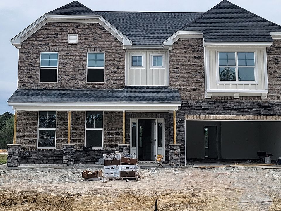 The Yates is a two-story home with four bedrooms and four baths. The large foyer features arched entries that lead to the formal living and dining room. A pass-through from the dining room, which has a coffered ceiling, leads to the kitchen and breakfast area. This open and functional kitchen features a breakfast bar, island and large corner pantry. A private office or guest bedroom and organizational space are also located downstairs. Three secondary bedrooms are located upstairs and feature walk-in closets and have access to two full bathrooms. A bonus room and large laundry room are also located upstairs. The luxurious primary suite, with a boxed ceiling, features a sitting area, dual closets, an outstanding mirrored dressing area, and bathroom with 5ft walk-in tile shower with separate sinks.