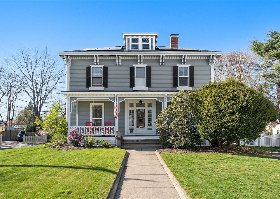 This magnificent 1850 Italianate Victorian home stands as a testament to the grandeur of its era. Enter onto the farmer's porch and into the foyer with hardwood floors, soaring ceilings and gracious staircase. The elegant parlor has a stately fireplace and is bathed in natural light streaming through the oversized windows. The gourmet kitchen, a blend of modern convenience and historic charm, features custom cream cabinetry, center island, granite countertops, Wolf double oven and gas cooktop, Miele dishwasher and LG Studio French door refrigerator leads out to the side porch perfect for relaxing and enjoying outdoor dining. A dining room, family room, office and 1/2 bath complete this floor. Ascend the curved staircase to 4 bedrooms including a primary with ensuite bath and a family bath. There's a bonus room/office on the third level. Near Auburndale Village with Star Market, Starbucks, the Auburndale Cove, schools, parks, shops, commuter rail, Green Line, Express Bus, I-90 & I-95.