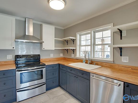 Charming and fully updated 3-bed, 2-bath bungalow in the heart of 5 Points! Just a short walk to Downtown Huntsville, this home boasts a brand-new 2025 roof with class 3 architectural shingles. Enjoy a remodeled front porch, a stunning kitchen with semi-custom cabinets, butcher block countertops, and a farmhouse sink. The master suite features a walk-in closet, spa-like bath, and cast iron tub. Modern upgrades include water-resistant laminate flooring, custom blinds, EV charger, and hardwired ethernet. Outside, find a wood privacy fence,, herb garden, RV hookups, two car detached garage, custom tree house and a large deck for entertaining. Move-in ready!