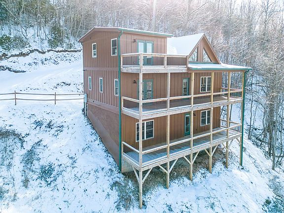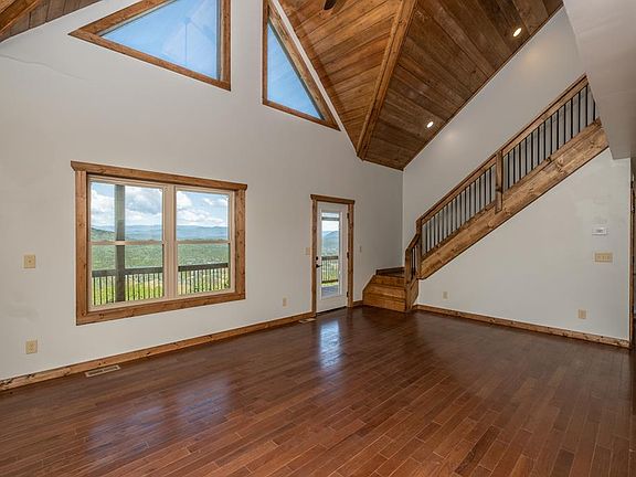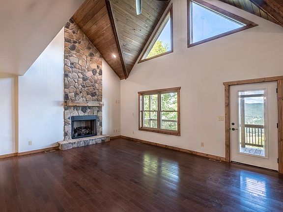 You'll feel like you are on top of the world in this stunning NEW CONSTRUCTION 3-bedroom, 3-bathroom chalet with unparalleled LONG-RANGE MOUNTAIN VIEWS. On nearly 3 acres in a gated mountaintop community, and with three expansive levels of decking, you can soak in the million-dollar views from every angle, whether you're sipping your morning coffee or hosting an evening gathering. As you approach, a gravel driveway leads to your welcoming front porch. Step inside and you'll be greeted by a magnificent Great Room with soaring vaulted ceilings, grand chalet windows that flood the space with natural light, and gorgeous wood floors that flow throughout the home. A floor-to-ceiling rock fireplace creates a cozy, rustic ambiance perfect for cool mountain evenings. Adjacent to the Great Room, the well-appointed kitchen has lots of cabinets, sleek granite counters, and a large center island. The main floor also features a comfortable bedroom, a full bathroom, and a convenient laundry area. Upstairs, the spacious open loft offers additional living or work-from-home space. The Master Suite is a true retreat, with private access to your own deck where you can unwind and admire the breathtaking views. The en-suite Master Bath features a beautifully designed layout with modern fixtures, while the generous walk-in closet provides ample storage. The finished lower level offers even more versatile living space, including a large open room that can serve as a family room, game room, or entertainment area. This level also houses an additional bedroom and bathroom, making it perfect for guests or family members seeking privacy. The mechanical room is conveniently located in the lower level as well. This never-before-lived-in chalet is the perfect blend of luxury and tranquility. Its combination of rustic charm, modern amenities, and awe-inspiring views make it a one-of-a-kind mountain retreat. Come see this new home and make it yours today!