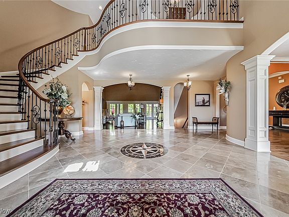 Discover luxury living at its finest in this French-Country inspired estate on a 3.5 acre private lot, nestled in the heart of Peninsula. This owner-built home blends timeless architecture with modern comfort and craftsmanship. Step through the grand two-story foyer into a world of elegance with sweeping staircases, rich woodwork, and stunning natural light at every turn. The Great Room dazzles with 24' vaulted ceilings, a statement gas fireplace and French Doors that lead to the backyard. The Chef’s Kitchen is the heart of the home with custom cabinetry, premium appliances, and an impressive granite island. It flows seamlessly into the Family Room with coffered ceilings and a fireplace and to a custom built Bar. The stately, formal Dining Room has arched walkways and custom built columns. The Primary Bedroom features beamed ceilings and a generous walk-in closet, and a spa-like en suite with dual vanities, a Jacuzzi tub, and a ceramic-tiled shower. The Den with built-in bookcases and a wet bar completes the first floor. Upstairs find three more bedrooms, a Jack & Jill Bathroom and a second full bath. The focal feature is the Bonus Room that sits above the 4-car attached garage. It is currently being used as an office, but could be a fifth bedroom. The home offers multiple places to entertain and unwind -- including the Game Room in the basement, the solarium/sunroom with a Hot Tub, and outside covered patio and scenic backyard. Car enthusiasts and Hobbyists will enjoy the attached 4-car garage plus the detached 4-car garage—ideal for vehicles, hobbies, or storage. Built to last with 2×6 construction, stone and stucco exterior, and premium finishes throughout. Located minutes from Cuyahoga Valley National Park, scenic trails, and the charm of downtown Peninsula. Easy access to St. Rt. 8 and the Ohio Turnpike. If you're looking for a dramatic and refined estate with space, privacy and timeless style, than 215 Brighton Lane is your place to call Home.
