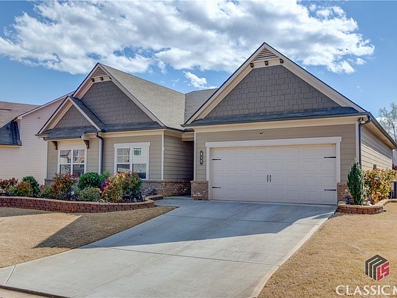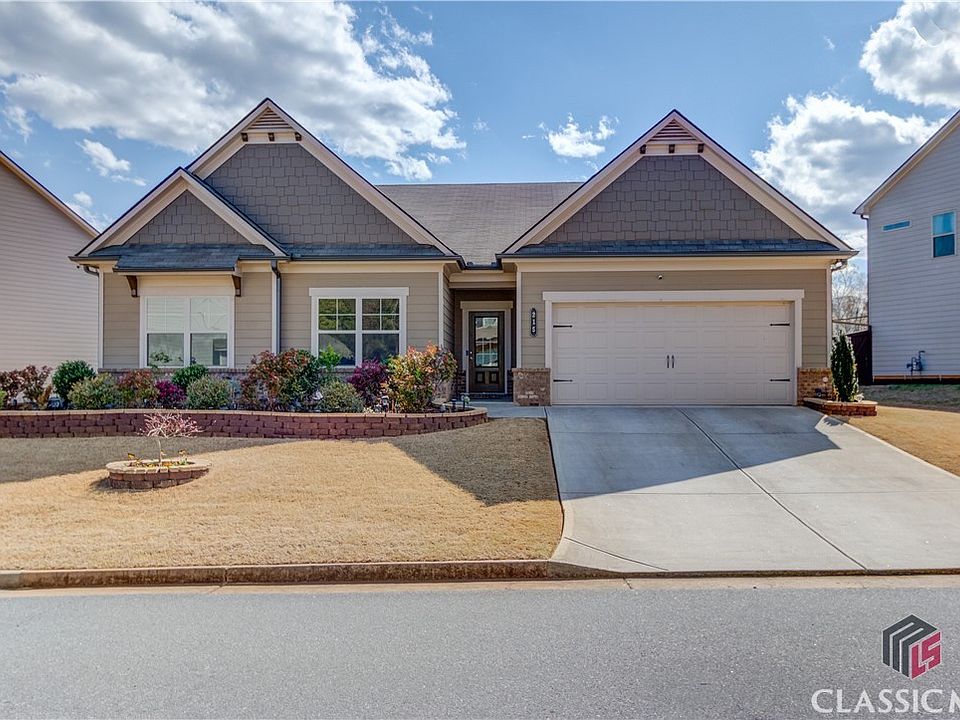This sweet ranch home is situated on a large, level lot with gorgeous curb appeal. From the front lawn custom designed flower beds to the large, fenced backyard, this home will check off all of your boxes! Once inside, lovely LVP flooring graces the main living areas and leads you back to the kitchen, family room, open concept living plan. Boasting a cozy fireplace, expansive natural light and easy flow, this home makes daily life a breeze. Enjoy casual meals at the large granite covered island or breakfast nook. Stainless appliances, a walk-in pantry and plenty of counter space make meal prep easy! The primary bedroom offers a spacious en suite bath with dual vanities, large shower and a walk-in closet for all your treasures. The additional two guest rooms are equally as spacious and share a nice secondary bathroom. Enjoy the Spring weather on your COVERED back patio area featuring an extended concrete slab for BBQing and enjoying your serene backyard. There's room for gardening and playing or just relaxing. Brighton Park offers a beautifully designed pool with a covered picnic area and a playground. Neighborhood sidewalks and street lights are inviting for Springtime strolls. Walking distance to the amenities make this sweet ranch plan the perfect place to call "home."