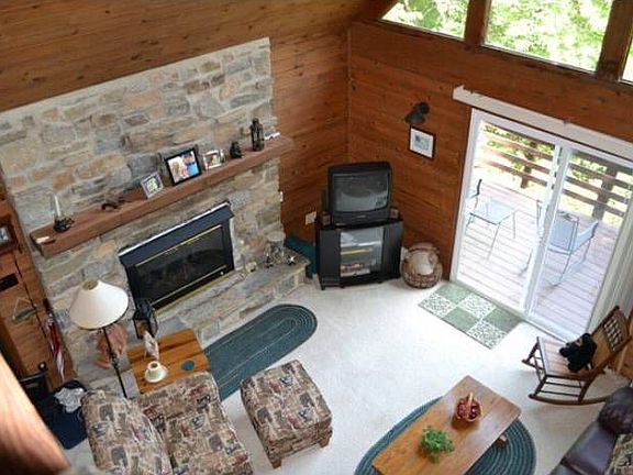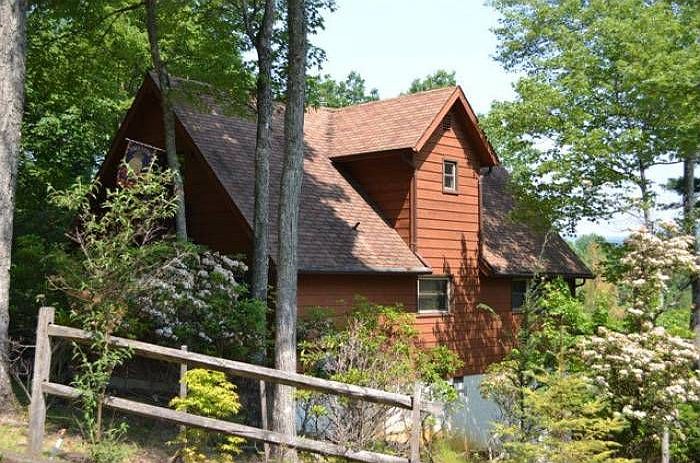 Affordable Cabin with SUPER View in GATED Resort near Blue Ridge Parkway/Boone,N.C. Great lot with easy parking and level entry into home. Spacious living/dining area featuring lots of glass to enjoy the long range mountain view, stone fireplace with gas log insert, and large, separate kitchen w/plenty of cabinets stocked with cooking & eating utensils. Home is selling FURNISHED, with some exceptions. Many updates completed in '09, including new decking and bath renovations. Large bedrooms with king size beds. Upstairs bedroom features private balcony replaced in '10. Clean and neat-SUPER VALUE! This gated resort provides great location & access for N.C.High Country activites, with peace of mind security. Surrounded by Mountain Laurel and Rhoddodendum, mapped hiking trails, trout filled streams and 3 lakes, you'll always find year round entertainment. Enjoy sunning/swimming in the pool, or inside activities at the large clubhouse, featuring rec rooms/excercise room & commercial kitchen. Enjoy Summer fun down by awesome Little Laurel Creek picnic/campground area for kids of all ages!