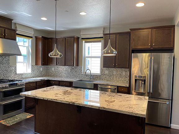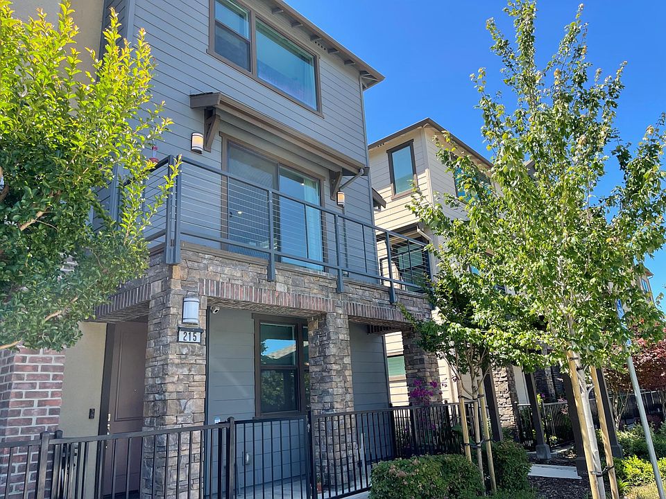 North West facing, end unit, upgrades including hardwood floor on stairs and 2nd floor, highly upgraded kitchen, premium granite countertop, mosaic full backsplash, GE cafe(the high end line from GE) stainless steel appliances, built in wine cellar and glass racks. Private deck on 2nd floor with wood paved flooring. Custom shade and drapery. 1 bedroom and 1 full bath downstairs, builder upgraded entertainment center in downstair bedroom. All countertop, shower splash, tiles and liners in bathroom are upgraded. 2 bedroom ensuite on the top floor. Spacious master bedroom with unobstructed view of Hayward hill. Designer interior paint. Walking distance elementary school, Cannery Water tower park, Hayward BART and Amtrak. Minutes drive to 880/580/238/92, San Mateo Bridge, Costco biz center. Open house Sun 6/25 3-4pm.