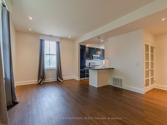Cabbagetown 2 Bedroom Apartment in Grand Victorian. This large unit has hardwood flooring, high baseboards and much of the charm and detail you would expect from a building of this era. Large principal rooms, with high ceilings and huge windows invite an abundance of natural light. The unit takes up the entire second floor. The renovated kitchen has loads of cabinets and updated appliances. The primary bedroom has a bay window, a huge closet with mirrored doors, and indirect lighting. Plenty of storage space is available inside the unit. Entrance to the apartment is through a secure garden gate, and the garden is available for the use of all tenants. One parking space is included. Public transit is right outside the door and the parks, trails, shops and restaurants of Cabbagetown are within walking distance. Pets are welcome and one car private parking is available for the unit.
