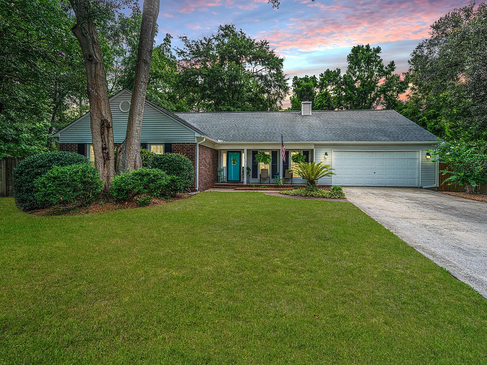 Charming ranch-style home with an in-ground pool on over 1/2 an acre...Welcome to 215 Chandler Drive, where charm meets privacy and comfort. This one-story home is situated on a cul-de-sac on .56 acres in Chandler Village, within the Dorchester II school district. Conveniently located just minutes from historic downtown Summerville, this property offers both tranquility and accessibility. Enter into the spacious family room featuring a cozy brick fireplace, tray ceiling, and ceiling fan, perfect for relaxing. The main living areas have been freshly painted and feature laminate wood floors, enhancing the warmth and beauty of the home. The updated kitchen features gorgeous wood cabinetry, crown molding, Quartz countertops, stainless steel appliances, built-in microwave, and an eat in...area with double windows and a ceiling fan. A large bonus/4th bedroom offers flexibility as a bedroom, office, playroom, or media room and is complete with new flooring, multiple windows for natural light, and freshly painted walls. Retreat to the spacious master bedroom with a vaulted ceiling, ceiling fan, walk-in closet, and ensuite bathroom featuring a garden tub, separate shower, and dual sink vanity. Two nicely sized bedrooms with ceiling fans share an updated full bathroom with a new vanity. A small office off of the hall provides added convenience and an extra little nook for your office or storage needs. Step outside to the fully fenced backyard featuring an inviting in-ground pool (separately fenced for safety), a large storage shed, beautifully treed and landscaped, garden beds, and a huge deck for summer barbecues and gatherings. Relax on the covered front porch with space for rocking chairs. Located in Chandler Village, this home offers easy access to downtown Summerville, I-26, Summerville Medical Center, Trident hospital, Charleston Southern University, restaurants, shopping, and major employers like Boeing, Joint Base Charleston, and BOSCH. Don't miss out on this rare opportunity to own a spacious ranch home with an inground pool on a private, large lot, in a desirable location. Imagine yourself enjoying the best of southern living at 215 Chandler Drive!