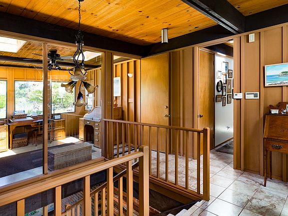"Exciting, unconventional and beautiful." That was the label put on Eichler-style homes when people first encountered them. This home is a faithful adaptation in its flow of inviting interior spaces, use of light providing atriums and highlighting the natural world out the windows by providing vignettes of nature indoors. Ideally oriented to catch the morning sun and evening sunsets this peaceful end-of-the-drive setting makes for enjoyable indoor/outdoor living throughout the year. Lots of updates and amenities throughout. Out in the banana belt but still close to town and beaches. Den can be used as 3rd Bedroom.