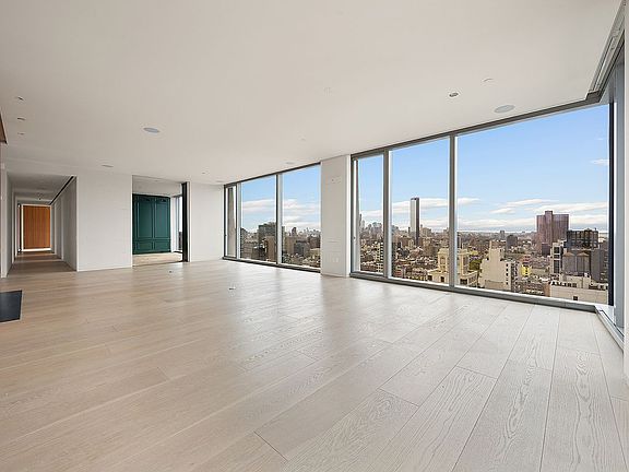 Perched atop the iconic Herzog & de Meuron-designed tower, Penthouse 3 at 215 Chrystie is a stunning full-floor residence offering unrivaled privacy, scale, and cinematic views. This extraordinary home blends minimalist architecture by John Pawson with bold, layered interiors reimagined by AD100 designer Ken Fulk. Surrounded by 266 linear feet of floor-to-ceiling glass, the residence delivers panoramic 360-degree views across the Manhattan skyline, from sunrise to sunset.
