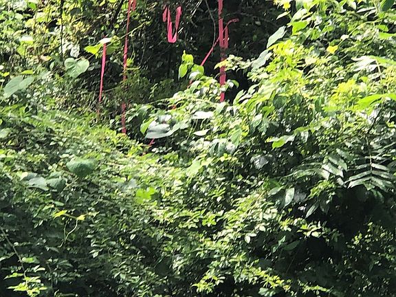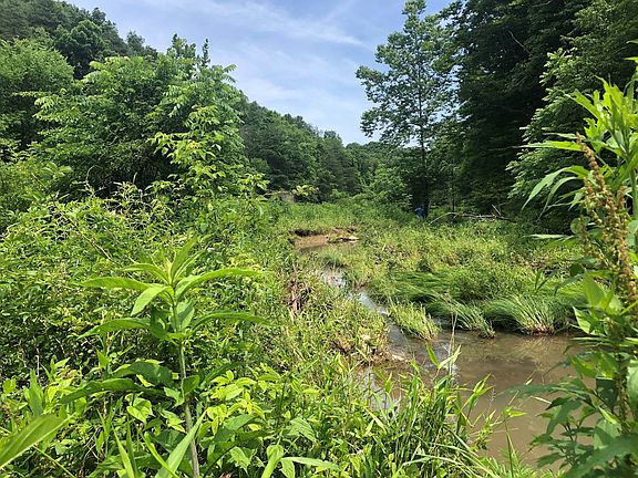 Property has road frontage on Old Camp Road and Cisler Ridge Rd. There is a right of way road into the property where the house is. A creek runs through the property.