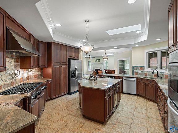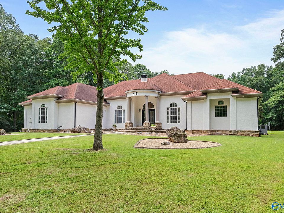 Spanish Mission Rancher on secluded acreage! HUGE Detached workshop & garage space-perfect for woodworking or a vintage car collection. Primary suite has sitting area & beverage station. Double walk-in closets & oversized tiled shower with dual entry points. Covered porches off most roofs of the house with a covered pavillion for outdoor entertaining. The gourmet kitchen opens to a keeping room & breakfast area. There are double pantries & ample storage in the laundry area. There is an oversized attached 3 car garage as well! This private oasis has gated entry & a beautiful treed setting. With easy access to Redstone or 231, this home offers estate living central to most major roadways.