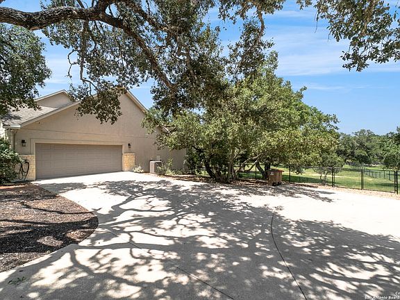 Located in the desirable Comal Trace subdivision on over 2 acres, this single-story home offers a spacious and versatile floor plan. The home features a dedicated office or flex space, a formal dining room, and a bright living area with a cozy stone fireplace. The kitchen is well-appointed with granite countertops, a breakfast bar, an island, and stainless steel appliances. The primary suite includes a tray ceiling, a large walk-in closet, a Jacuzzi tub, and a separate shower. Outdoor highlights include a peaceful back deck, a covered pergola with a custom fire pit, and an additional 2-car garage. The back property is fully fenced, with a smaller fenced area off the rear deck. The property is within the Comal Independent School District, close to shops, restaurants, medical facilities, and highways 281 and 46. Enjoy nearby walking trails, tennis and basketball courts, and the natural beauty of the Hill Country with frequent sightings of local wildlife.