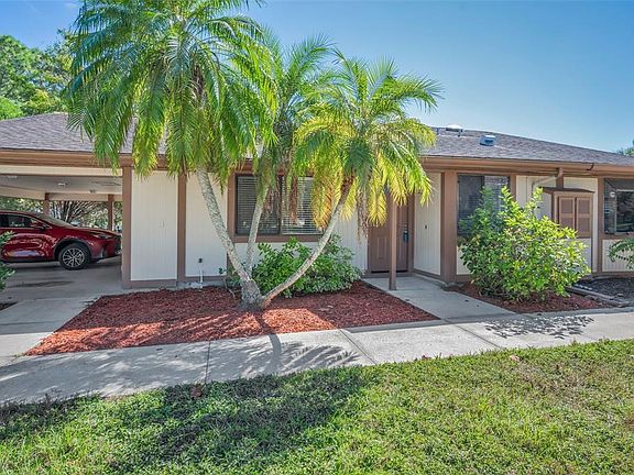 Welcome to this BEAUTIFULLY RENOVATED, LOW HOA, NON-FLOOD ZONE, 2-Bedroom, 2-Bathroom END-UNIT villa with a CARPORT in a highly desirable area, offering the perfect blend of comfort, style, and convenience. This stunning home features luxury vinyl flooring throughout with new 5” baseboards, new interior doors and frames, and elegant chair rail detailing. The spacious living area boasts a cathedral ceiling with new ceiling fans and recessed lighting, while the remodeled kitchen impresses with shaker-style soft-close cabinets, quartz countertops, a glass tile backsplash, BRAND NEW stainless steel appliances, and an oversized sink. The primary bedroom offers sliding glass doors to a SCREENED LANAI and a walk-in closet, with an ensuite bath showcasing an oversized porcelain-tiled walk-in shower. The second bedroom includes a pocket door and a convenient washer and dryer closet, and the second bath features another oversized shower with porcelain tile. Additional highlights include a custom built-in coat rack by the front door, 2021 A/C, 2024 tankless water heater, covered parking, and an outdoor storage area. The community offers fantastic amenities including a pool, tennis and basketball courts, a fishing dock, and a playground—all with a low HOA. Conveniently located near HIGHLY RATED SCHOOLS, this villa is just 2 miles from shopping, restaurants, and a movie theater and only 12 miles from Tampa International Airport. It is just 16 miles from award-winning Clearwater Beach and only 9 miles from beautiful Honeymoon Island State Park, perfect for beach days, kayaking, and exploring nature trails. With its modern upgrades and convenient location near shopping and dining, this beautifully updated villa is ready to move in and enjoy the Florida lifestyle.