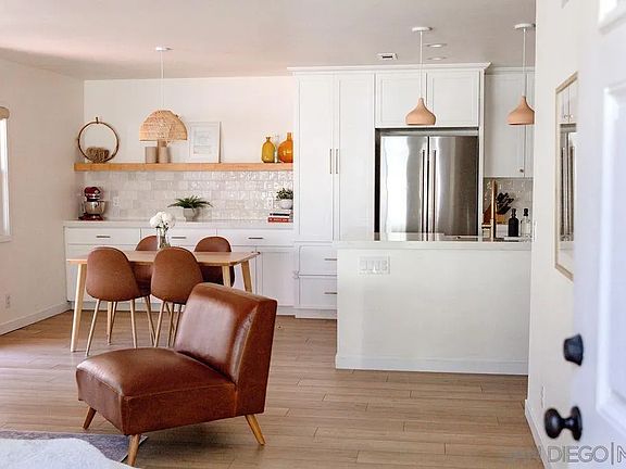 Welcome to your dream home in Encinitas' highly sought-after Village Park neighborhood! This stunning single-level gem has been completely remodeled with top-notch upgrades throughout. Step inside to find a bright and airy open floor plan, featuring a gorgeous kitchen with custom cabinets, new appliances, and sleek countertops. The kitchen seamlessly flows into the living areas, creating a perfect space for entertaining.The bathrooms have been transformed with custom tile work and elegant upgraded vanities. Enjoy the the walk-in master shower, complete with designer tile and modern fixtures. The home is equipped with a completely upgraded HVAC system. Central heat and air with a new furnace, AC, ducting, and water heater,. The two-car garage boasts stylish epoxy floors, combining practicality with a clean, polished look. Outside, a spacious, fully fenced hardscape patio with artificial turf awaits, offering a low-maintenance area perfect for relaxing or hosting gatherings. You're just a short walk from fantastic community amenities, including a pool, pickleball/tennis courts and a playground. This home blends modern convenience with relaxed living in one of Encinitas' most desirable neighborhoods.