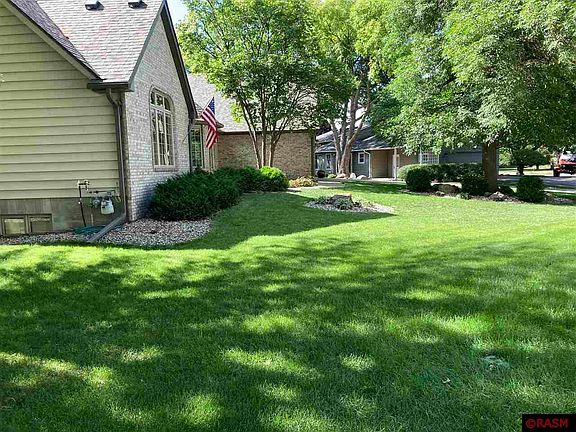 Well built, beautiful home w/ quality construction from top to bottom. Almost 4,300 SF. This home is in a very desirable location in upper N. Mankato on a private cul-de sac, built by an excellent contractor-- Groebner Construction. 4 bedrooms + a den, 3 baths & an amazing sunroom, plus a double attached garage. Once inside the front door, you are welcomed by a sizable entry area. Then a huge eat in kitchen w/ an abundance of counter space, maple cabinets, tile floors and solid surface counters, informal dining and built in desk area. All doors from kitchen area are pocket doors to easily be closed off. Main floor laundry w/ lots of cabinets, closet and pantry including a 2nd built in desk. Enjoy the spacious sunroom with plenty of windows and beautiful wood ceiling right off the kitchen that leads to back deck. The dining room w/ tray ceiling is great for guests & the living room has vaulted ceilings with a gas fireplace. Also on the main floor is a bedroom, full bath and inviting den which could be another bedroom w/ the addition of closet. Lower level has a large family room w/ a 2nd gas fireplace, wet bar area that makes this area perfect for entertaining. Also in lower level are 2 large bedrooms w/ double closets, a 3/4 bath and huge storage room w/ built in shelves. This room could also be set up for a future game area and/or theater room. The upper floor has an open staircase to a private master suite which includes bedroom, 3/4 bath w/ tile floors and an unbelievable walk in closet that is 9 x 13 w/ a wide variety of organizers including one for shoes and an island w/ drawers. The exterior offers unmatched curb appeal with brick & steel siding. The yard has been very well landscaped including inground sprinklers w/private fenced in backyard with nice sized deck off the sunroom. NOTEWORTHY ITEMS: Central vac, 200 amp electrical, owned water softener, sump pump, indoor/outdoor water meters, lots of fresh interior paint, new roof in '22, new furnace & A/C in '22, new lower level carpet '23. Safe is included. Still available for showings.