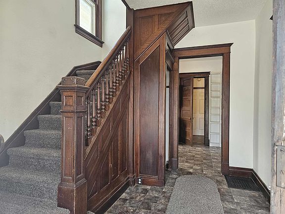 Curb appeal shows the yesteryear charm and character outside and throughout. The beautiful crafted woodwork, trim, doors, pocket doors and stairway and railing will fascinate your guests. Ornate door knobs and hardware. Hardwood floors and new carpet. All Cleaned, painted and ready for someone to move in and enjoy! 4 bedrooms & 2 full baths. 1 bath on the main floor and 1 on the upper level with the 4 bedrooms. Separate Living room & Formal dining room. Walk up attic and full unfinished basement. Covered front and back porches. Partially fenced lot. They just don't make homes like this anymore.