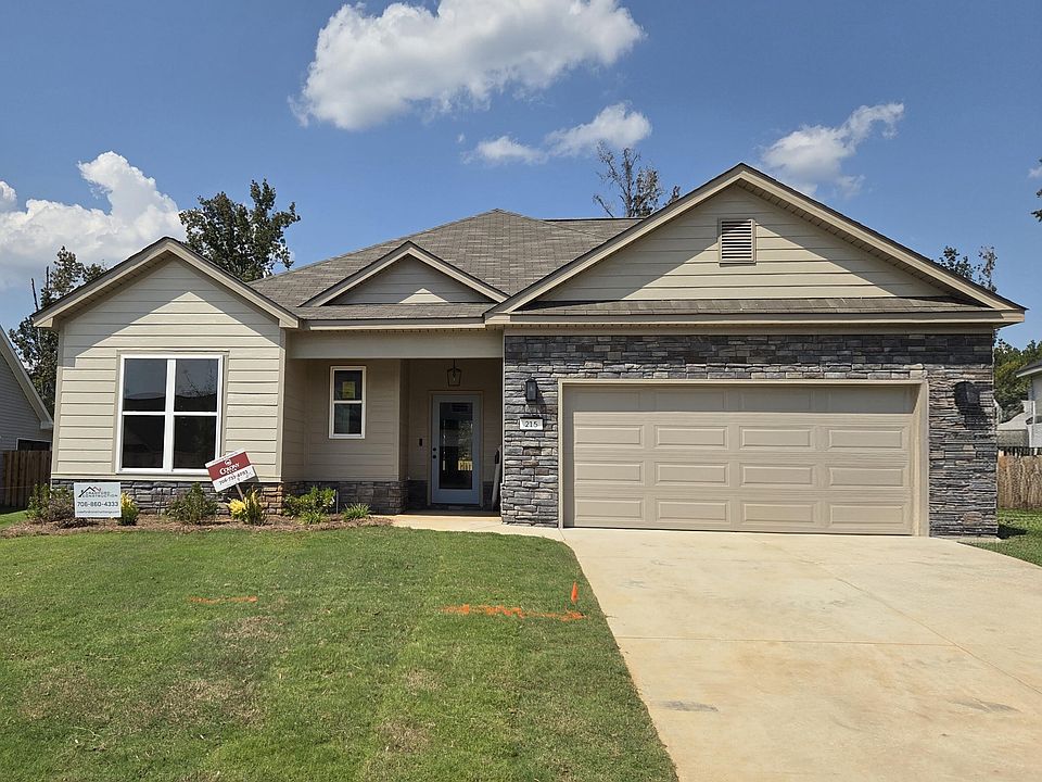 Welcome to your modern oasis in this Hill Plan by Crawford Construction. With 4 bedrooms and 3 baths, you have the benefits of a ranch plan with 3 bedrooms being on the main level. The fourth bedroom doubles as a rec room or second owners suite with it's own closet and full bath on the upper level. You'll love the modern craftsmanship throughout, with wide trimmed baseboards, pot filler over gas range, custom cabinetry, under cabinet lighting and even ceiling fans are included in all bedrooms and the family room! Retreat to the Primary Suite with a private bath and large walk in closet. Decorative ceramic tile surrounds in the shower and a soaking tub. Entertaining will be a breeze in the spacious family room with plenty of windows to let in natural light. Enjoy the open concept, with the kitchen and dining areas leading out to the covered back porch. The family room focal point is a sleek recessed fireplace. The waterfall kitchen island is an ideal gathering spot. The home comes with the stainless steel Forno appliance package that includes a 2 year warranty! The kitchen also boasts a walk-in pantry lined with custom wood shelving. Wood shelving continues throughout the home in all closets and provides an abundance of storage! Completing the home's layout is a conveniently located laundry room. You will experience many high end elements in this home and modern touches. Waterproof click flooring throughout all living areas, and bedrooms on the main level and premium carpeting on the upper level with ceramic tile in bathrooms. Radiant barrier roofing, tankless water heater, carriage style garage doors, peg board in the garage and Electric Vehicle charging plug in the garage are other extras that are included in this home. Enjoy the neighborhood's resort-style pool with a pavilion, Activity Field, and Paved Recreational Trails, and sidewalks. Plus, this home's location is incredibly convenient, with easy access to Fort Gordon, Medical Districts, Aiken and Augusta, and I-20. 8,000 in Builder Incentives. 625-KR-4412-00