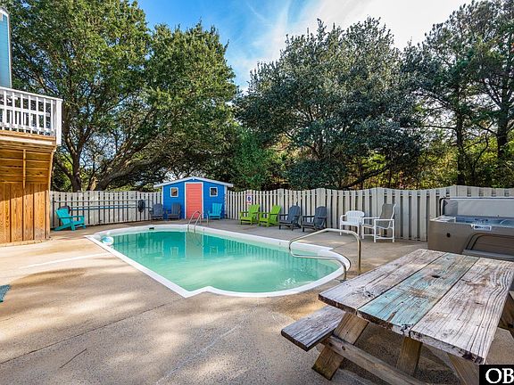 Southern Shores Coastal Retreat – Steps to the Beach, Private Pool, Hot Tub & More! This well-maintained 4BR/3BA beach home in the heart of Southern Shores offers the perfect blend of comfort, privacy, and investment potential. Nestled among majestic live oaks and just a short walk to the beach via a convenient pedestrian crosswalk, this property is a proven rental performer and an ideal second home or primary residence. Enjoy a private saltwater pool, hot tub, and a fully equipped rec room with billiards, card table, sitting area, and full-size fridge—perfect for entertaining. The fenced backyard (new custom wood fencing) provides a safe haven for pets and kids, while the large sun deck and covered porch offer ample space for outdoor dining and lounging. Inside, the spacious living room is filled with natural light, complemented with oak laminate and tile flooring throughout, for easy maintenance. The kitchen features newer SS appliances and countertops in 2023, interior/exterior paint were completed in 2022, plus a new roof & fencing in 2025. Dinnertime offers both eat-in and open dining areas—ideal for hosting large groups. A versatile ground-level flex room with dual bunks, for optional sleeping arrangements, could easily serve as a media room, office, or den. Excellent income, averaging $60,000/yr owner income, the past 3 years! Southern Shores is a private, low-density community with uncrowded beaches and easy access to the Village of Duck, Kitty Hawk, Nags Head, and the best of the Outer Banks!