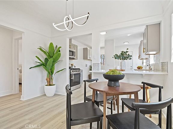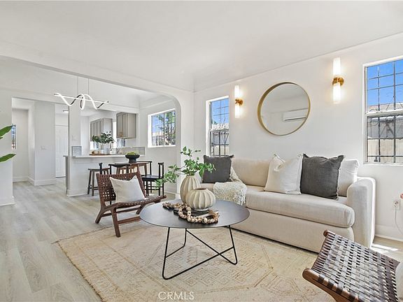 Looking for a beautiful Spanish-inspired gem in the heart of Broadway-Manchester? This 2-bedroom, 1-bath turn-key residence offers 930 sq ft of sunlit comfort on a generous lot! Inside, tall ceilings and bright windows bring warmth and energy to the open-concept layout. Designer lighting, wood-style floors, and crisp white walls create an inviting ambiance that flows throughout the living and dining areas. The kitchen shines with sleek appliances, plentiful cabinetry, a convenient breakfast bar, and tucked-away laundry hookups.