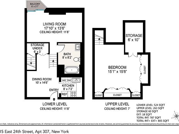 Fully Furnished, large 1 bedroom apartment in the Gramercy, Madison Square Park neighborhoods. This expansive triplex loft has 12 feet high ceilings with South facing window and balcony. The first level welcomes you with a furnished kitchen and a full dining area. The second level offers a 17 feet long living and a bathroom with a spa shower and Whirlpool bath. Upstairs sleeping area has 7 foot ceilings. There is an abundance of floor to ceiling closets along both sides of the bedroom. As well are storage on the main floor and along the bedroom wall. Apartment comes with a Washer and there are Dryers located on every floor. Penny Lane is a former factory with a charming English Tudor lobby transformed into a full-service co-op. Conveniently located at walking distance to Gramercy Park and the Flatiron district, 2 blocks from the 6 train and surrounded by restaurants and shops. Enormous roof deck with amazing views of the Chrysler and the Empire State buildings. 24 hour doorman, live-in super, two washer/dryers on every floor, public parking with direct elevator access, bike storage, full recycling room, video security, package room and very attentive staff contribute to making this apartment a great home in New York City. Sorry, no dogs.