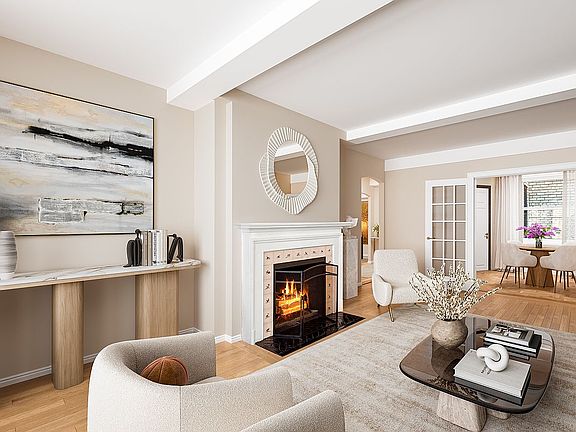 The spacious primary bedroom easily accommodates a king bed, has a large walk-in-closet, and boasts a renovated ensuite bath with Graff fixtures and Toto toilet. The second bedroom is equally large with its own walk-in closet and renovated bath with shower. Apartment 3A showcases the finest elements of prewar design, including hardwood floors, 8.5-foot beamed ceilings, French doors, and a working fireplace.