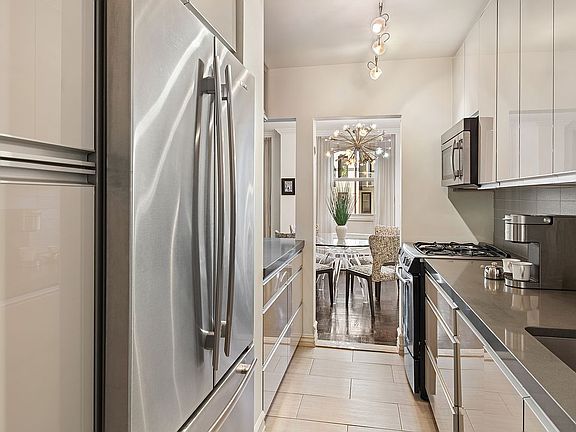 Enter into a grand 30-foot living and dining area, highlighted by a bright Dining L with two windows-easily convertible into a third bedroom or home office. The renovated chef's kitchen features top-tier appliances including a JennAire cooktop oven and microwave, Miele dishwasher, and JennAire refrigerator, with a large open counter for seamless entertaining.