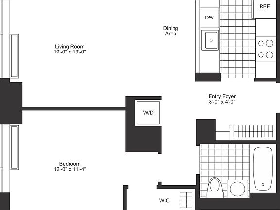 Corner 1 Bedroom, 1 Bath with a pass-through windowed kitchen, stainless steel appliances, a walk-in closet in bedroom, an in-home washer/dryer, floor-to-ceiling windows, strip wood flooring, and northeastern exposure. Note: This is a lease assignment, and the apartment will be delivered in "as is" condition. The schedule lease end date of this assignment is 2/19/26.