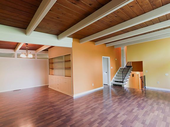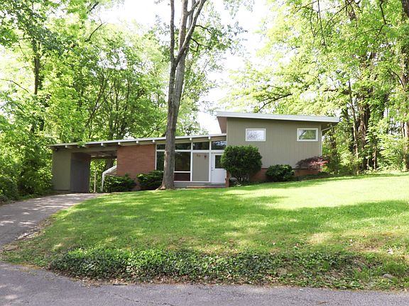 This historic gem is a classic representation of mid-century modern architecture. Designed by Bob Knapp of Hironimus-Knapp-Given Associates, this home has updated conveniences while retaining its modernist features such as Pergo floors, wood ceilings and beams, built-in storage and skylights. The kitchen features solid surface counter tops with a newer stove, refrigerator, sink (all 2019), built-in microwave, and breakfast bar/buffet which is handy when entertaining. Much of the kitchen has been freshly painted. There is also a skylight in this area which brightens and expands the feel of the room. The L-shaped living room and dining room have wood floors which are in pristine condition. The wood ceiling, wood beams, and clerestory windows echo back to the 1950’s when the house was designed and built. The dining room boasts a large built-in display cabinet with glass front which provides plenty of storage without the need for a hutch or sideboard. The family room off the kitchen has parquet floors, a wall of built-in shelves, ventless gas fireplace and new half-bath. The upper level has two bedrooms which share an updated full bath with skylight. The primary bedroom features original built-in drawers and cabinets. The lower level features a bedroom and large full bathroom with a separate shower and soaking tub. This level was structurally renewed in 2021 by Healthy Spaces. This includes a water management system; new structural supports; and new flooring, drywall and paint. Off the finished area is the utility room and laundry. The home is nestled into a wooded .63 acre lot with beautiful scenery in the front and a quiet, secluded backyard. You can enjoy the backyard almost year-round from the 23x14 screened back porch. Pet-proof screening was installed in 2023. Rounding out the back yard is a detached garage for storing lawn equipment and yard toys. Carport has large, built-in storage closets and access to the family room. A new water line runs from the house to the street. Address is on a snow-removal route.