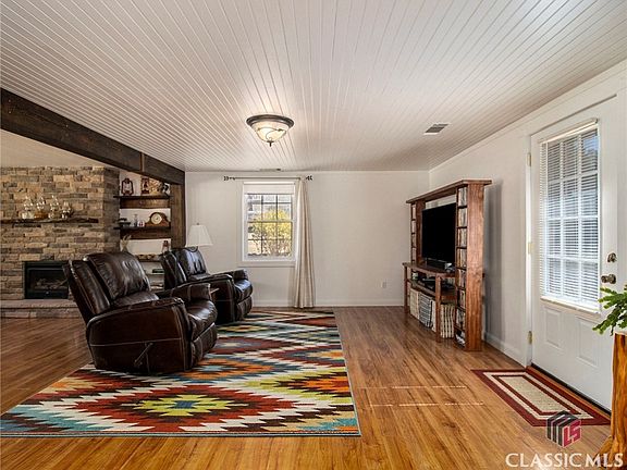 This 4-bedroom, 2-bathroom home has been meticulously cared for by one owner and is located 21 miles from downtown Athens. The home sits on 4.66 acres, with an additional 5.26 acres being sold with the home for a total of 9.92 acres. It features pine wood ceilings, a stack stone fireplace, and two HVAC systems that are 2.5 years old with a built-in air purifier. Laminate floors throughout the main level add to its charm. The detached garage/workshop is connected to electricity. Outdoor amenities include an outdoor fireplace, grill, and outdoor oven/smoker area. This home currently uses the well on the adjoining lot but also has its own well. The adjoining lot backs up to a creek and already has a separate septic tank, power pole, and well, making it ready to build on.
